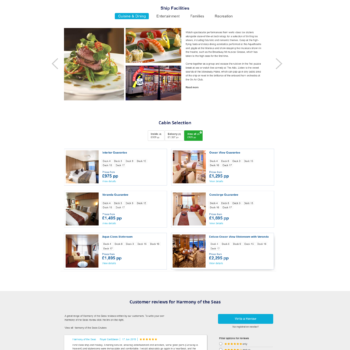 Within the Product & Design team, we wanted to create reusable components and modules library that we could use on other landing pages, to achieve this we created the UX/UI designs for the cruise ship pages.